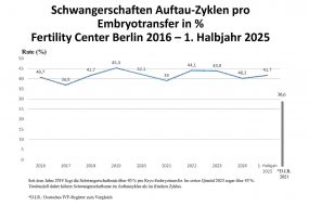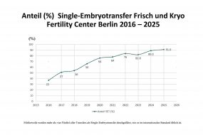 Infertility treatment has developed very positively in recent years. Our pregnancy rate is about 40% per transfer (link). For this high pregnancy rate we work in the laboratory for 7 days using the latest technologies such as embryoscope, vitrification and polar body diagnostics. Since 1999, as the Fertility Center Berlin, we have been continuously involved in national and international research in order to improve the quality of reproductive medicine and to be able to successfully care for our patients at the cutting edge of medicine.